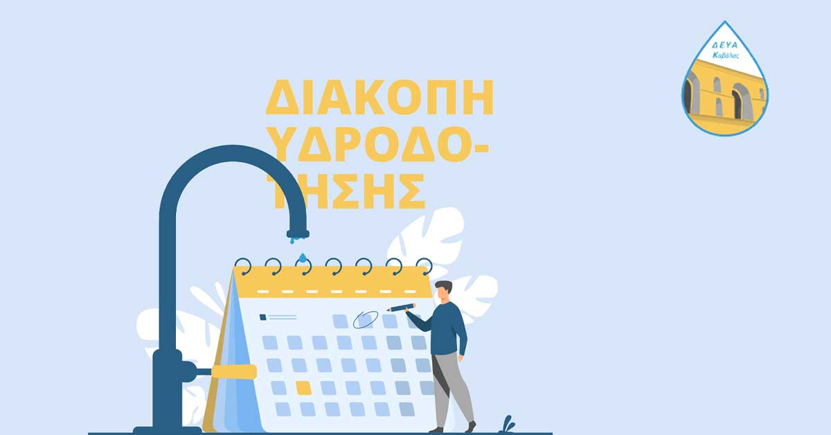 Η διακοπή γίνεται λόγω των απαραίτητων εργασιών που πραγματοποιούνται στο πλαίσιο του έργου «Προμήθεια και εγκατάσταση συστημάτων ελέγχου διαρροών (τηλεέλεγχος / τηλεχειρισμός) σε υφιστάμενα δίκτυα ύδρευσης του Δήμου Καβάλας».