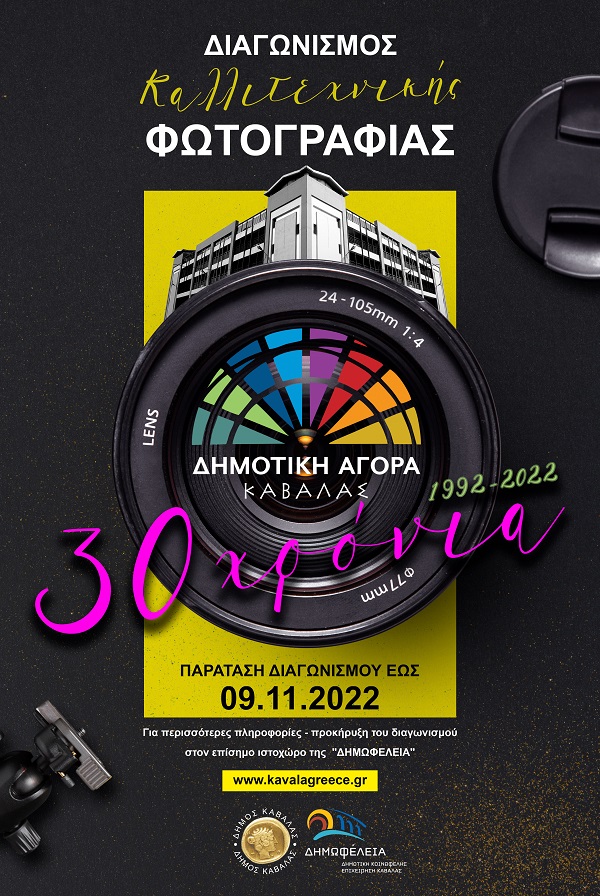 Για την καλύτερη προετοιμασία των συμμετεχόντων – ερασιτεχνών και επαγγελματιών φωτογράφων – του επετειακού διαγωνισμού καλλιτεχνικής φωτογραφίας με αφορμή τα (30) χρόνια λειτουργίας της Δημοτικής Αγοράς Καβάλας (1992-2022), ο Δήμος Καβάλας και η Δημοτική Κοινωφελής Επιχείρηση αποφάσισαν να παρέχουν σε αυτούς τον αναγκαίο χρόνο, ώστε να προβληθούν όσο το δυνατόν περισσότερες όψεις του κτηρίου, μέσα από την ιδιαίτερη φωτογραφική τους αποτύπωση. Για τον λόγο παρατείνεται η διάρκεια του διαγωνισμού, έως και την Τετάρτη 9 Νοεμβρίου 2022.
