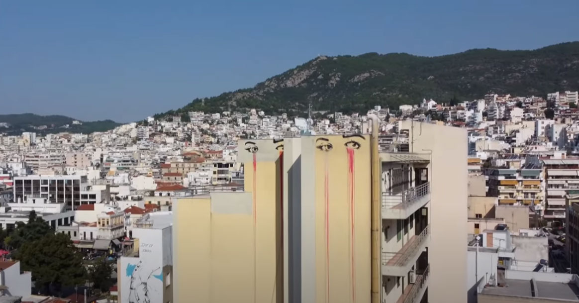 Τα κόκκινα μάτια-graffiti του καλλιτέχνη Diro, που είναι αποτυπωμένα σε πολλά κτίρια, τοίχους και πολυκατοικίες και είναι ορατά από πολλά σημεία της πόλης της Καβάλας, μπορούμε να θαυμάσουμε και από ψηλά, σε ένα διαφορετικό βίντεο, μέσα από το drone του Simon Kranz.